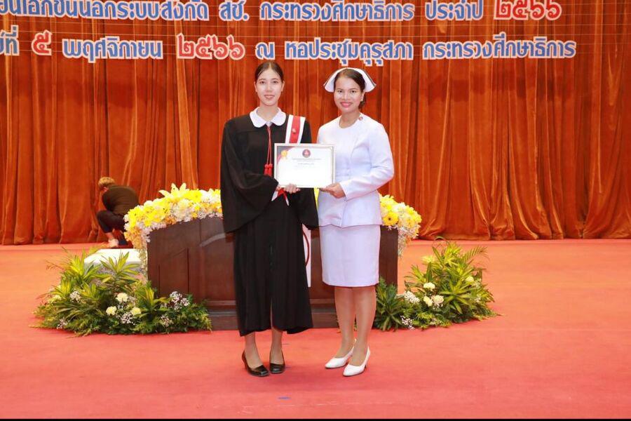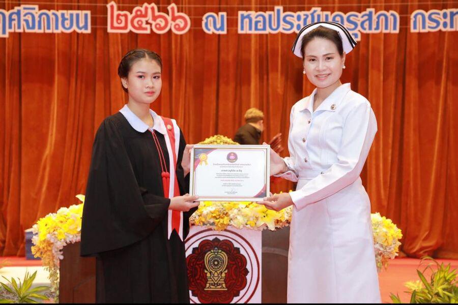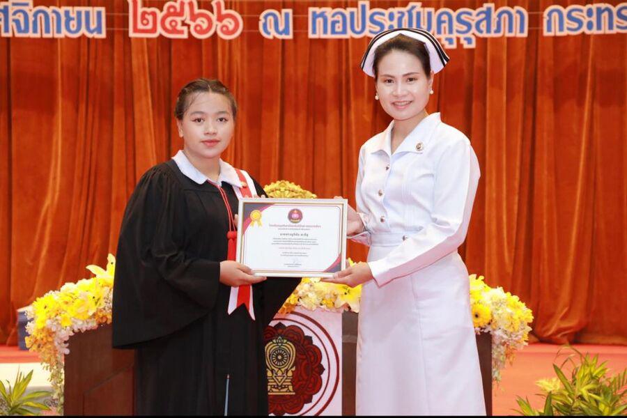 ขอแสดงความยินดีรางวัลนักนักศึกษาดีเด่น ประจำปีการศึกษา 2566 มอบโดยอาจารย์พยาบาลวิชาชีพ ผู้บริหารหลักสูตร พว.กรรญา ภานุรักษ์ พว มะลิจันทร์ ดวลใหญ่ วันที่ 5 พฤศจิกายน 2566 ณ หอประชุมคุรุสภา กระทรวงศึกษาธิการ กทม S:0